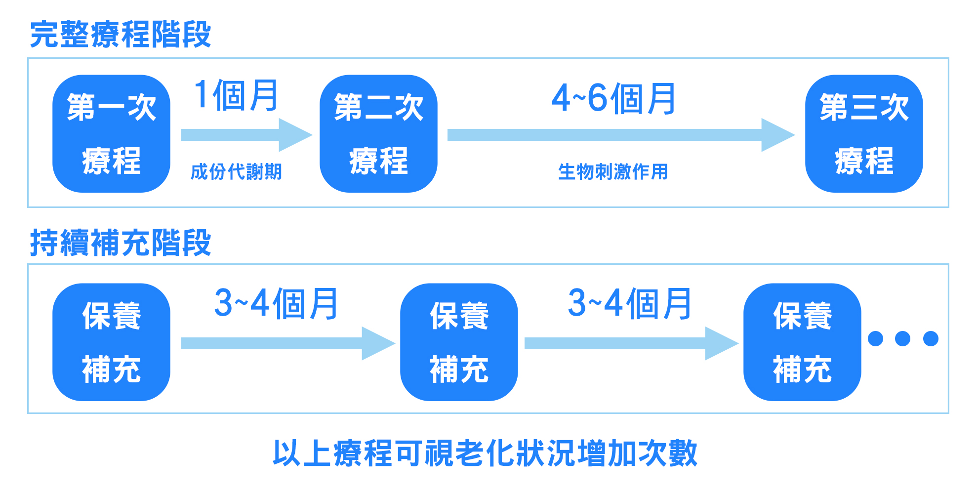建議完成療程需治療達3-4次,每次治療頻率不得低於間隔一個月。