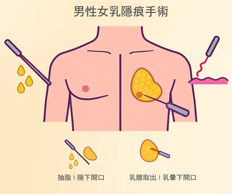 男性女乳手術的傷口小,且隱藏在不易發現的地方。