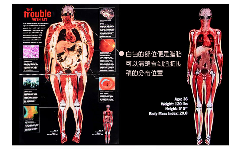 身體外型除了骨骼和肌肉外,脂肪佔了剩餘的部分,由於骨骼及肌肉通常是無法改變的,所以美體雕塑的改變可以由脂肪的多寡來下手,從下圖可以看見,肥胖者與正常體重者的脂肪分布量差別,很驚人,脂肪包覆在皮下組織(皮下型脂肪)與包覆臟器(內臟型脂肪),而抽脂主要針對的部分,是皮下型脂肪為主,也就是酪梨型肥胖體質。